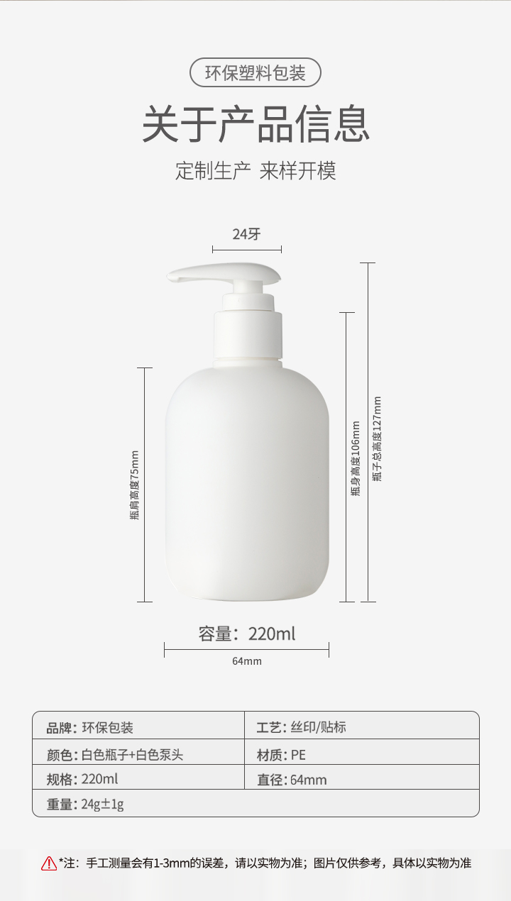 • 現(xiàn)貨220ml白色洗護(hù)瓶PE個(gè)性胖圓瓶包材洗發(fā)水沐浴露護(hù)發(fā)素分裝瓶,牙膏、洗發(fā)水、沐浴露、護(hù)發(fā)素、身體乳、洗衣液等