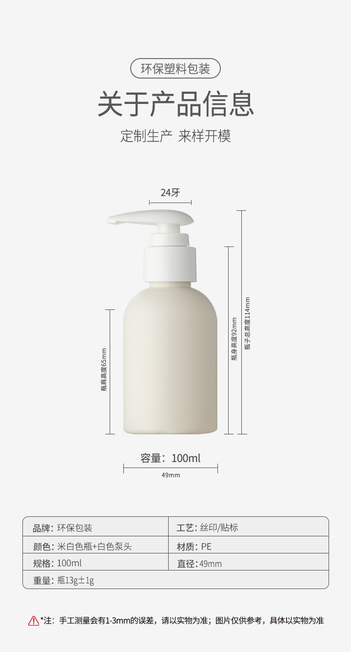 現(xiàn)貨100ml米白色洗護(hù)分裝瓶PE包材身體乳洗衣液試用裝專用小樣瓶